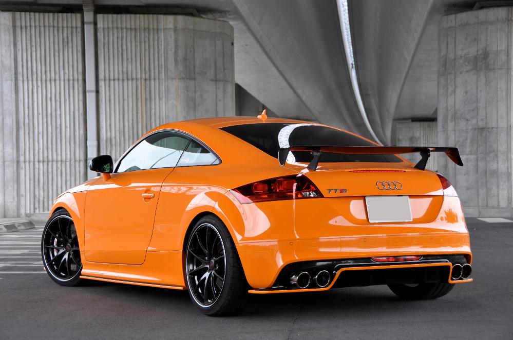 ソーラーオレンジのボディカラーが鮮やかなTTSです。ご紹介しきれないほど手の入っていますが、全てが走り重視のパーツチョイスなのも特徴です。また"速いクルマ = 美しい”という表現がピッタリな1台です。ボトム部分のカーボンアイテムをボディカラーで塗り分ける参考にもなるカスタマイズです。